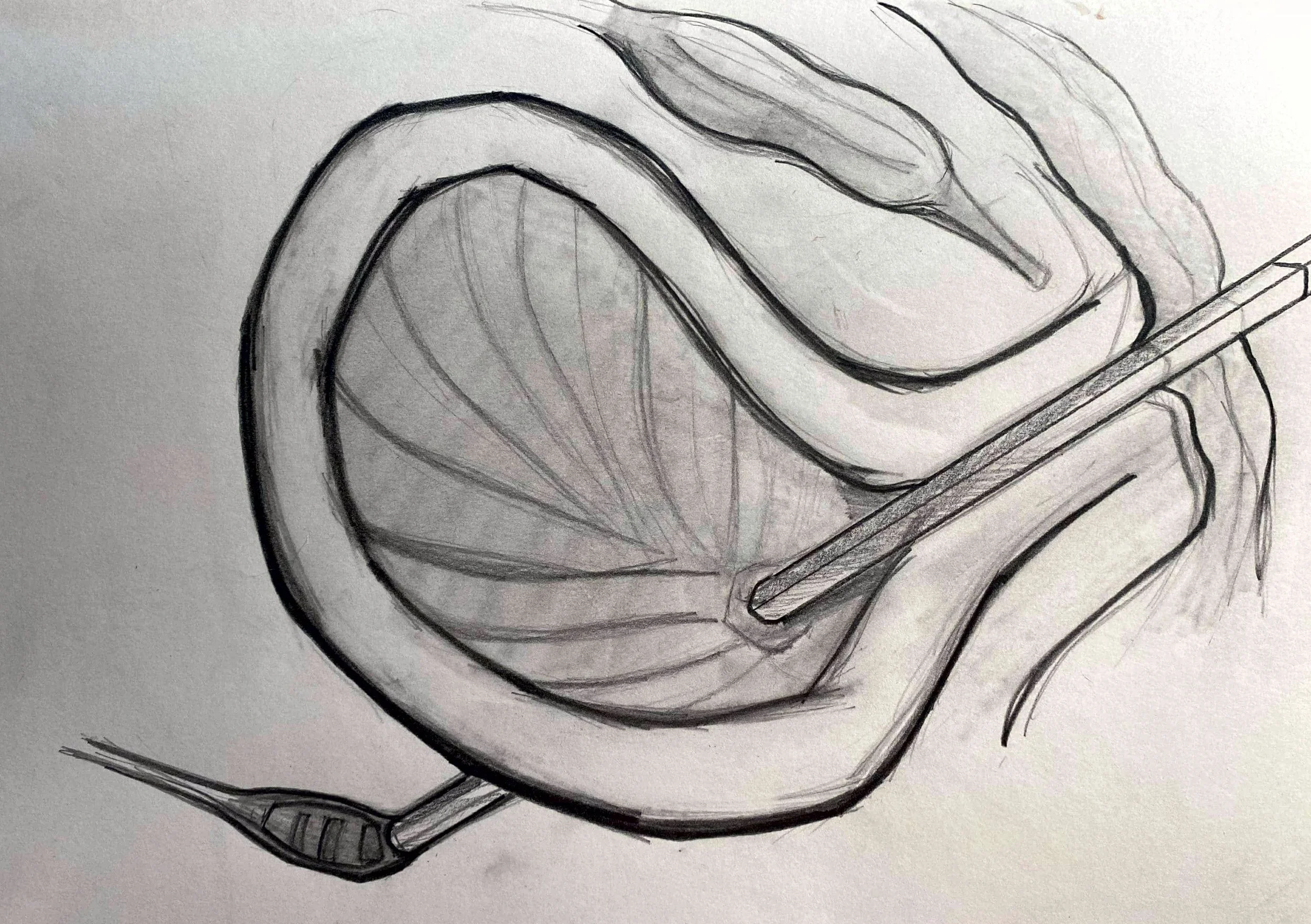 urinary and digestive system ureteroscopy two stones located in proximal and distal ureter insertion of ureteroscope into bladder ureteroscope